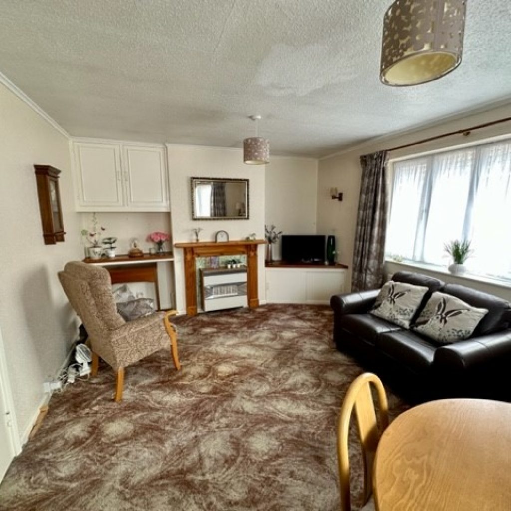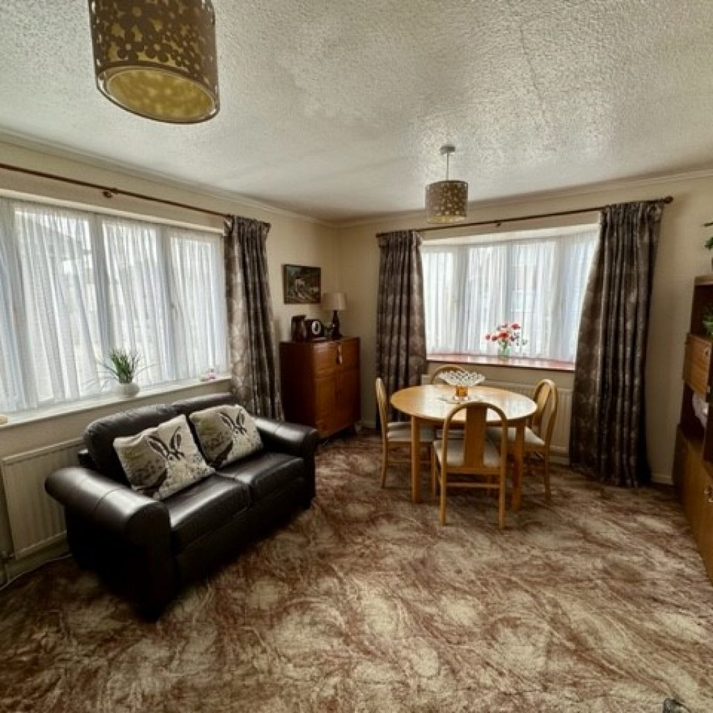 Fireplace with Baxi back boiler for central heating and domestic hot water with gas fire in situ. Two radiators. Sealed double glazed bay window to front.