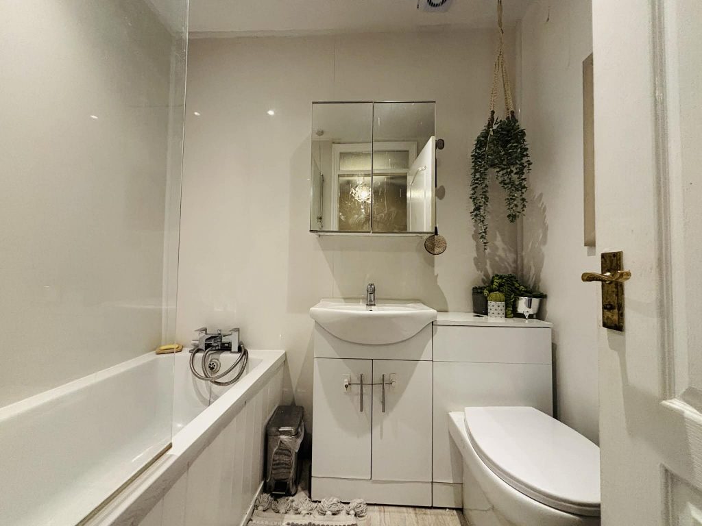 Access to insulated roof space fully insulated and part boarded with ladder. Sealed double glazed windows to rear.