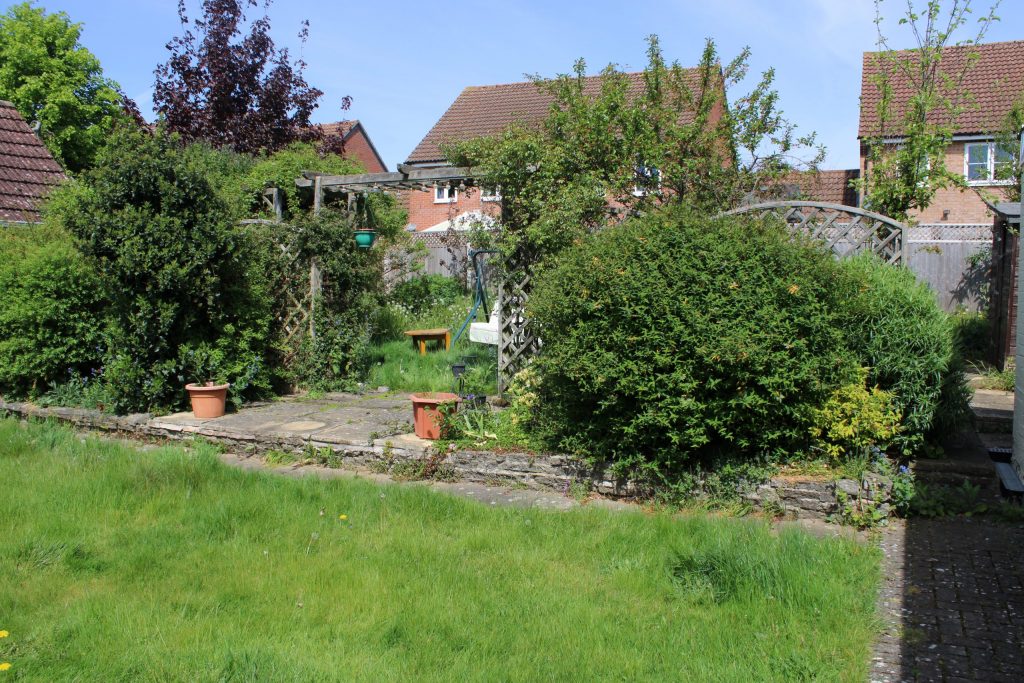 Gardens are fully enclosed by panelled fencing laid predominantly to grass with raised ornamental walling with further trellis work.