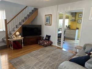 Most attractive L shaped living room with laminate flooring. Radiator. Attractive skylight window to front and double glazed window to side. Door to