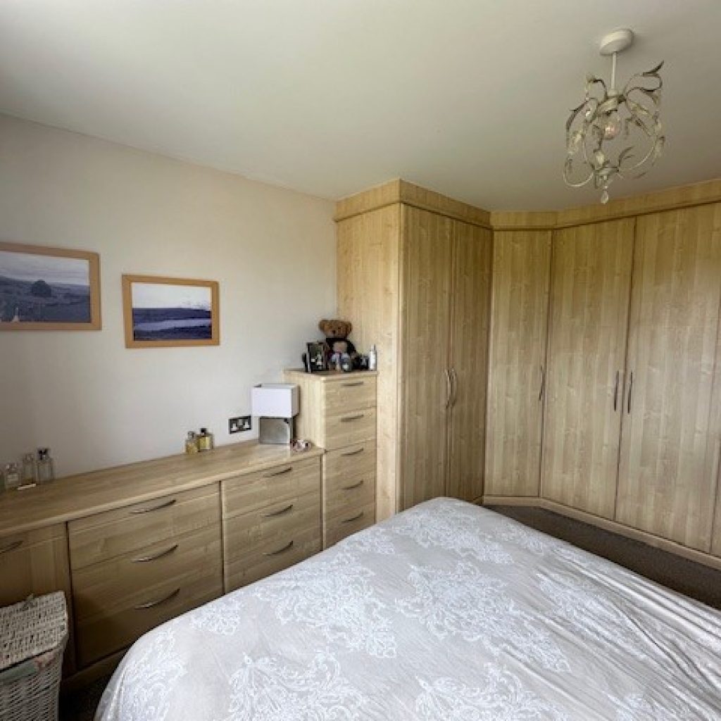Comprehensive range of built in bedroom furniture incorporating fitted cupboards and drawer units. Radiator. Power points. Sealed double glazed windows to rear with far reaching views over parkland.