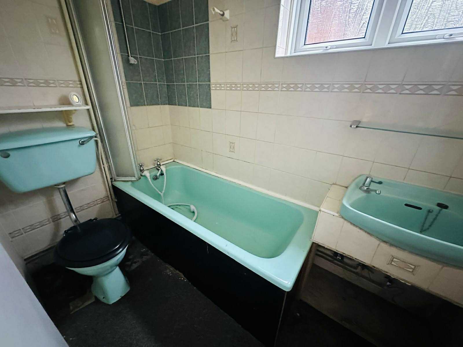 Three piece suite comprising panelled bath. Low level WC. Wash hand basin. Double glazed frosted window to rear.