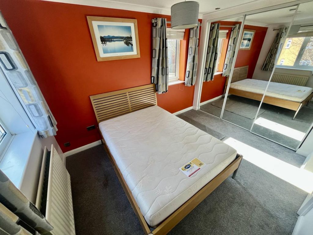 Attractive dual aspect room along one wall is range of built in wardrobes with sliding floor to ceiling mirror doors to front. Recessed downlighters. Sealed double glazed windows to side and rear. Radiator. Power points. Access to insulated roof space.