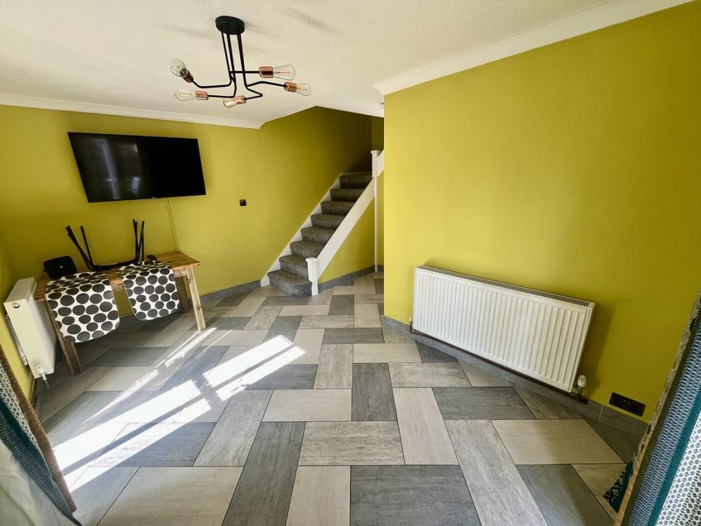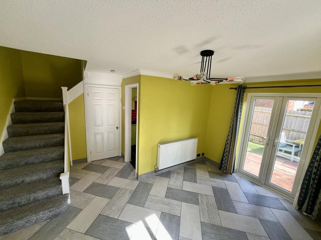 Two radiators. Power points. TV aerial point. Sealed double glazed casement doors to garden. Open plan staircase gives access to first floor. Understairs storage cupboard.