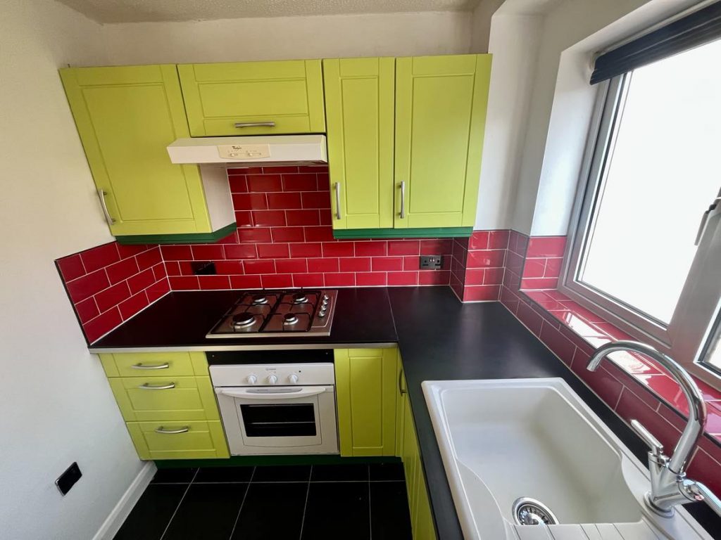 Attractively fitted with hand painted faced units with comprehensive worktops above comprising single drainer stainless steel sink unit with mixer tap set in worktop with fitted cupboards under. Appliance space. Further work surface with four ring gas hob inset with extractor hood above and built in oven under. Further range of base and eye level wall units. Wall mounted gas boiler for central heating and domestic hot water. Part tiled walls.