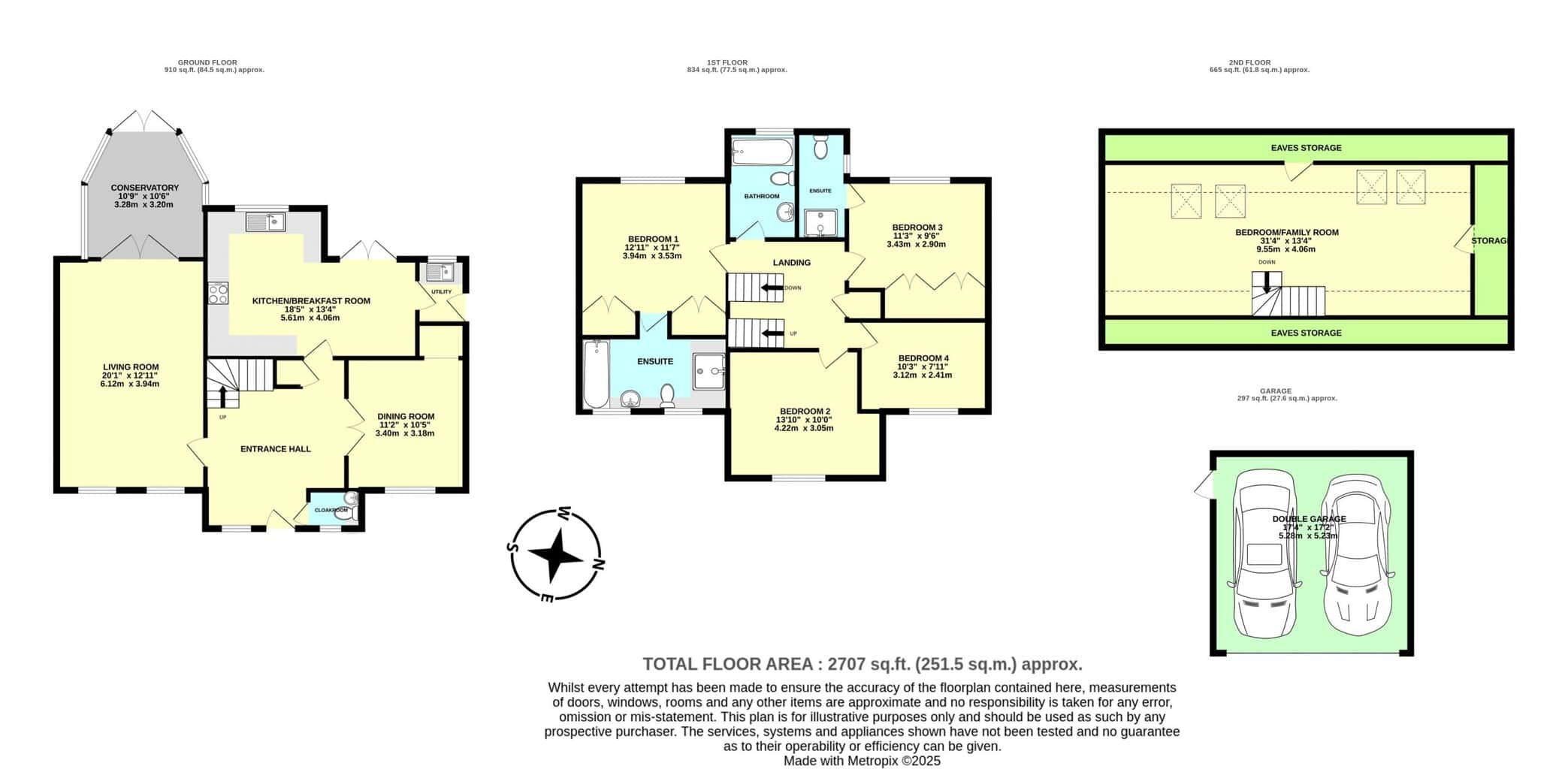 White four piece suite comprising panelled bath. Wash hand basin set in vanity top with storage cupboards under. Low level WC. Ladder effect heated towel rail. Fully tiled shower cubicle with thermostatically controlled shower unit in situ. Frosted double glazed window to front. Shaver point. Recessed downlighters.