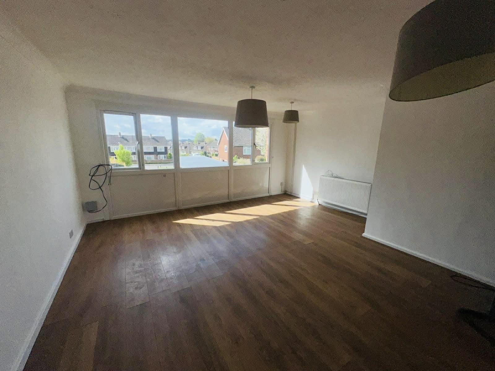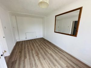 Attractive living room enjoying a southerly aspect with sealed double glazed windows to rear. Wood effect laminate flooring. Radiators.