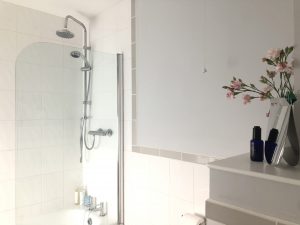 Sealed double glazed windows to front. Attractive three piece suite comprising panelled bath with separate thermostatically controlled shower unit above and glazed shower door adjacent. Low level WC. Pedestal wash hand basin with mixer tap. Ladder effect heated towel rail. Tiled flooring. Part tiled walls. Extractor fan.