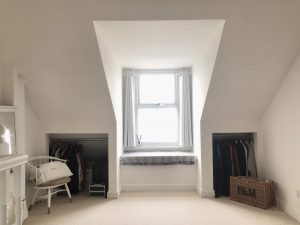 Eves storage cupboards. Radiator. Sealed double glazed window to rear with views over gardens and enjoying a westerly aspect. Hanging rails. Radiator.