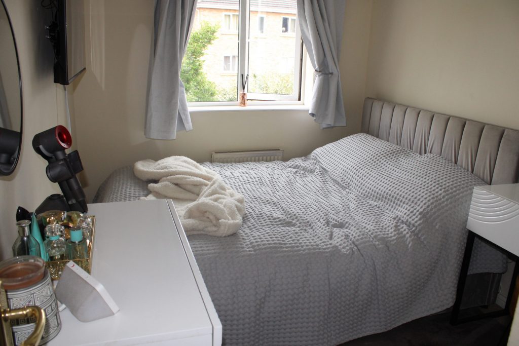 Lit by sealed double glazed windows to side. Radiator. Power points. Recessed double wardrobe cupboard. Door to