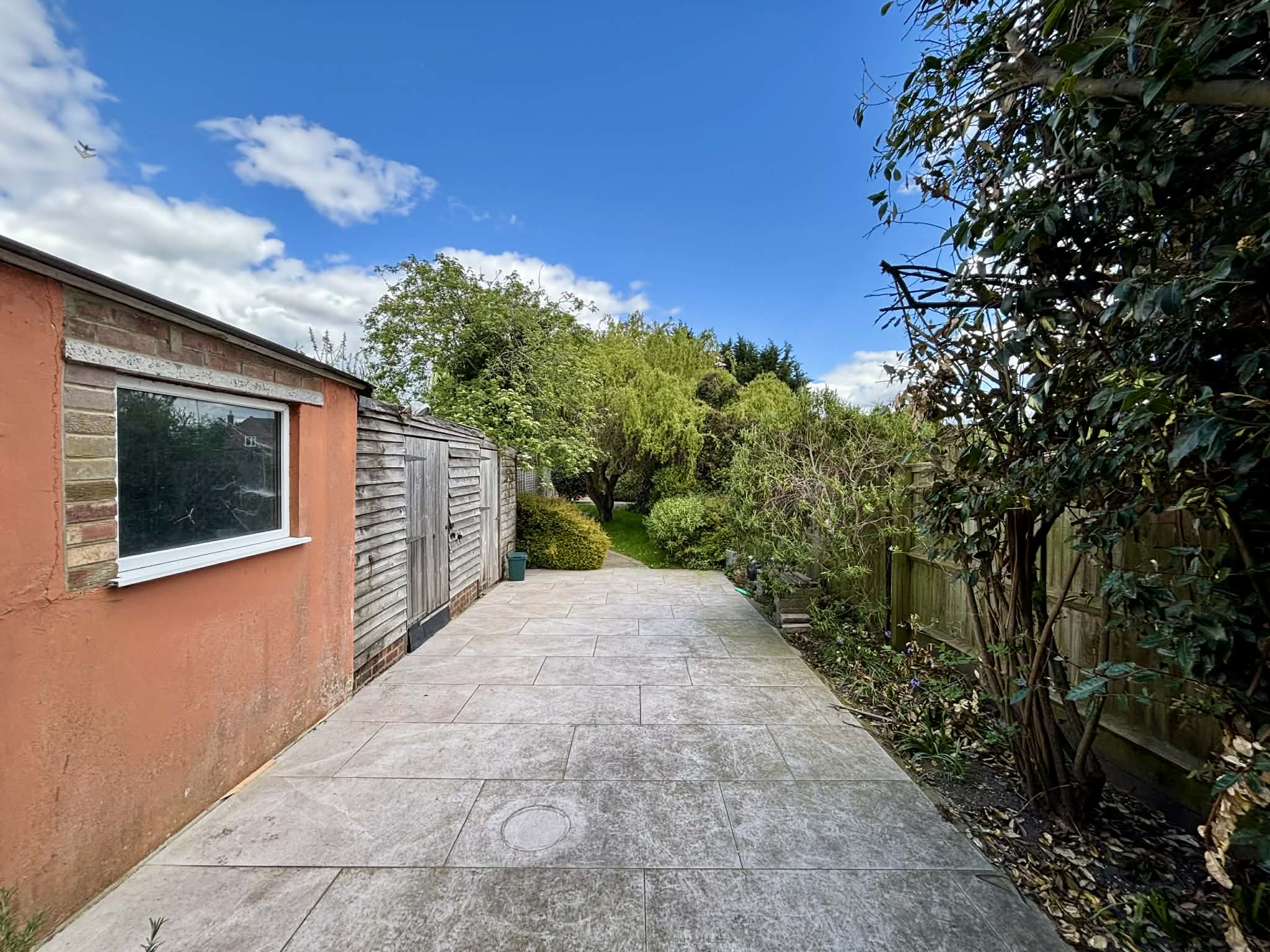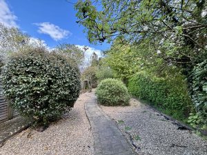To the side of the property is a detached brick built garage with up and over door. To the rear of the garage is further timber garden stores.
