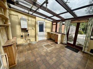 Part timber construction. Plumbing for washing machine. Quarry tiled flooring. Wall mounted Worcester gas boiler for central heating and domestic hot water. Sealed double glazed UPVC door to side. Further raised double doors giving access to garden.
