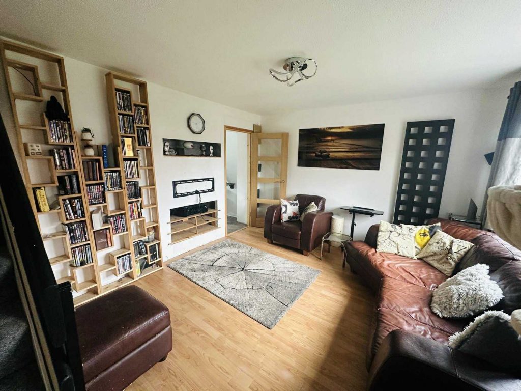 Laminate flooring. Radiators. Sealed double glazed windows to front. Recess with shelving. Storage cupboard under open plan staircase. Door to