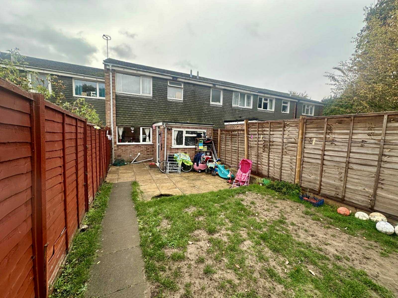 To the rear of the property is a sizeable garden fully enclosed by panelled fencing and with gate to rear parking area and garage.