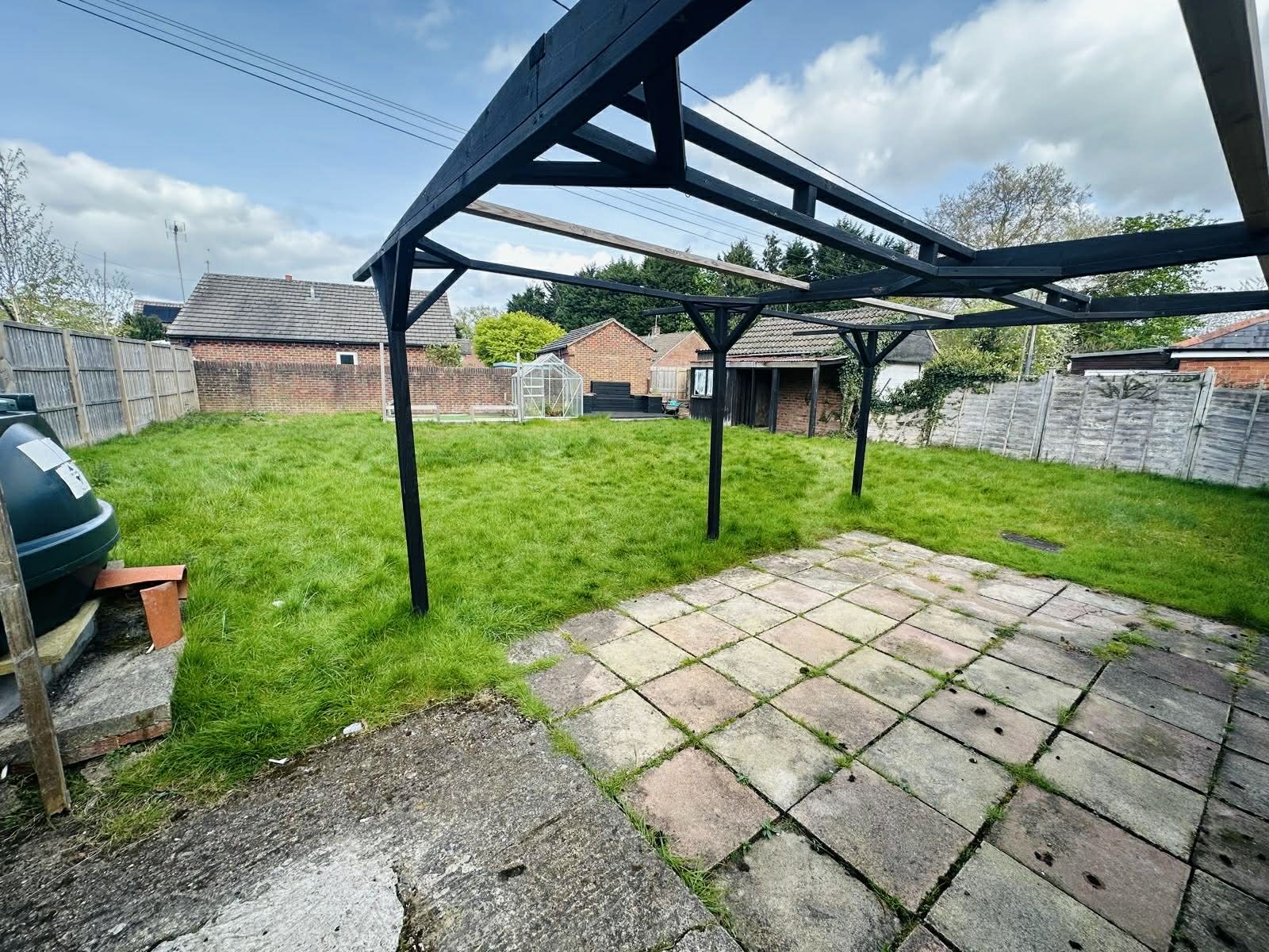 Side pathway and gate leading to rear garden. The rear garden is sizeable fully enclosed and laid to grass with several seating areas and raised decking.