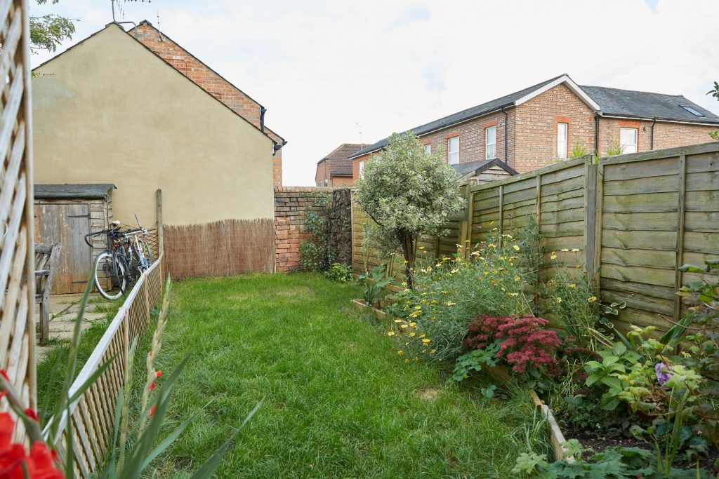 Courtyard front garden, westerly aspect. Traditional front door leading to